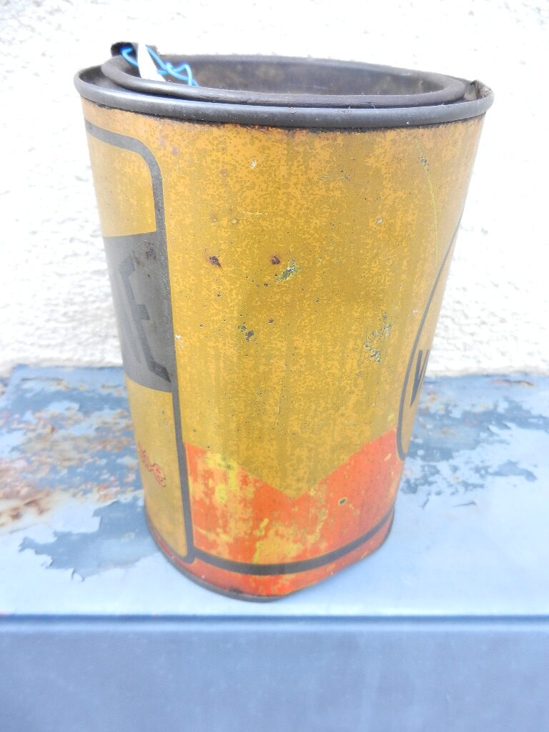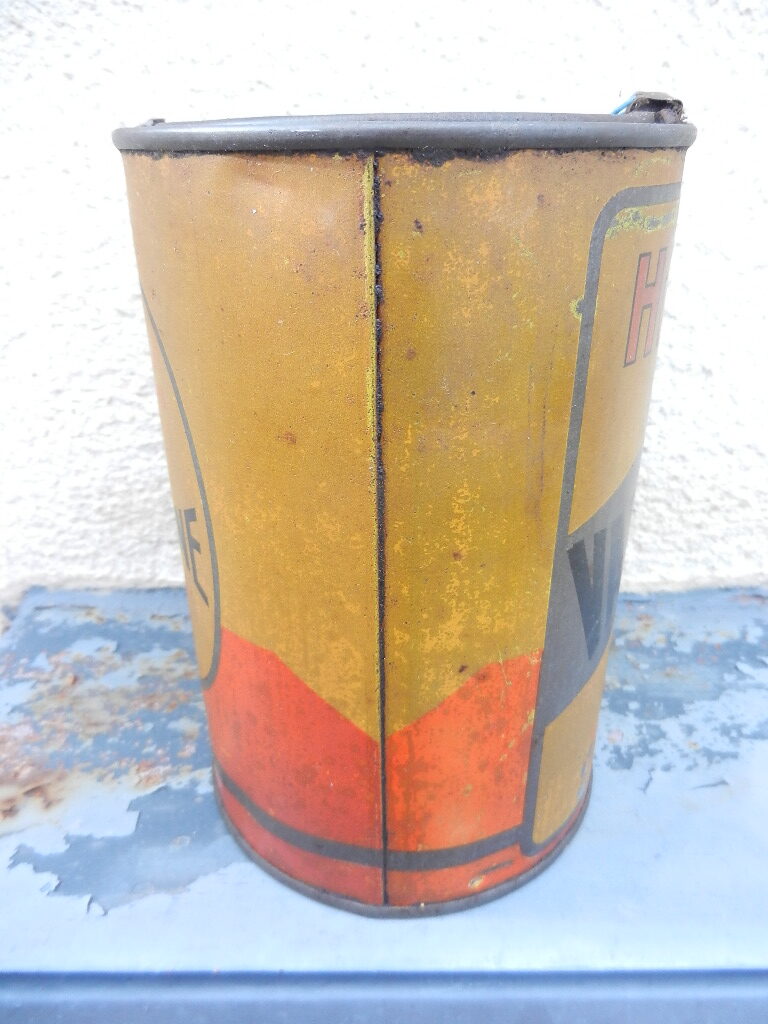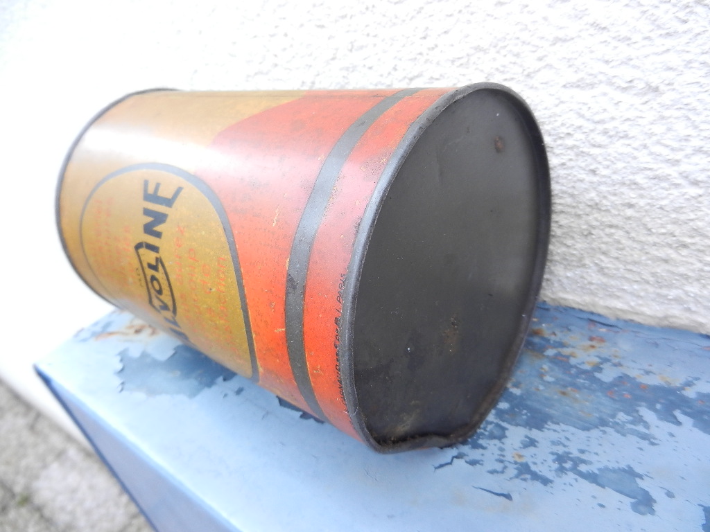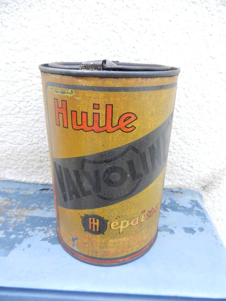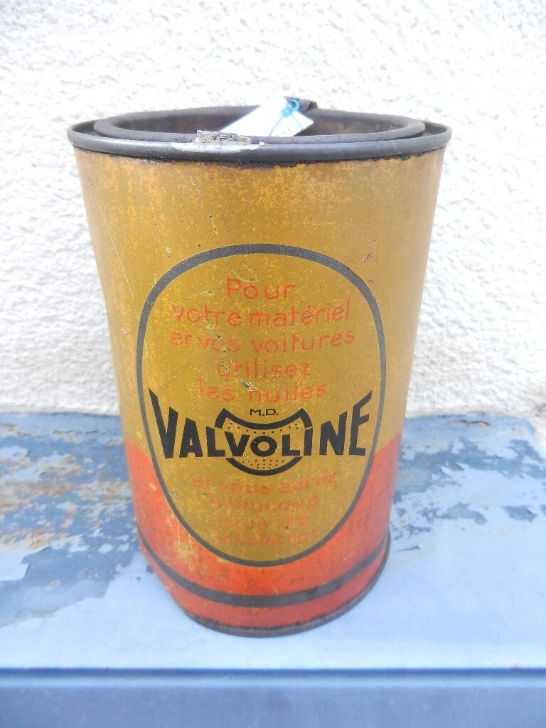 Bidon d’huile cylindrique VALVOLINE Huile épaisse. dimensions : 15 x 10 cms plein ou presque.