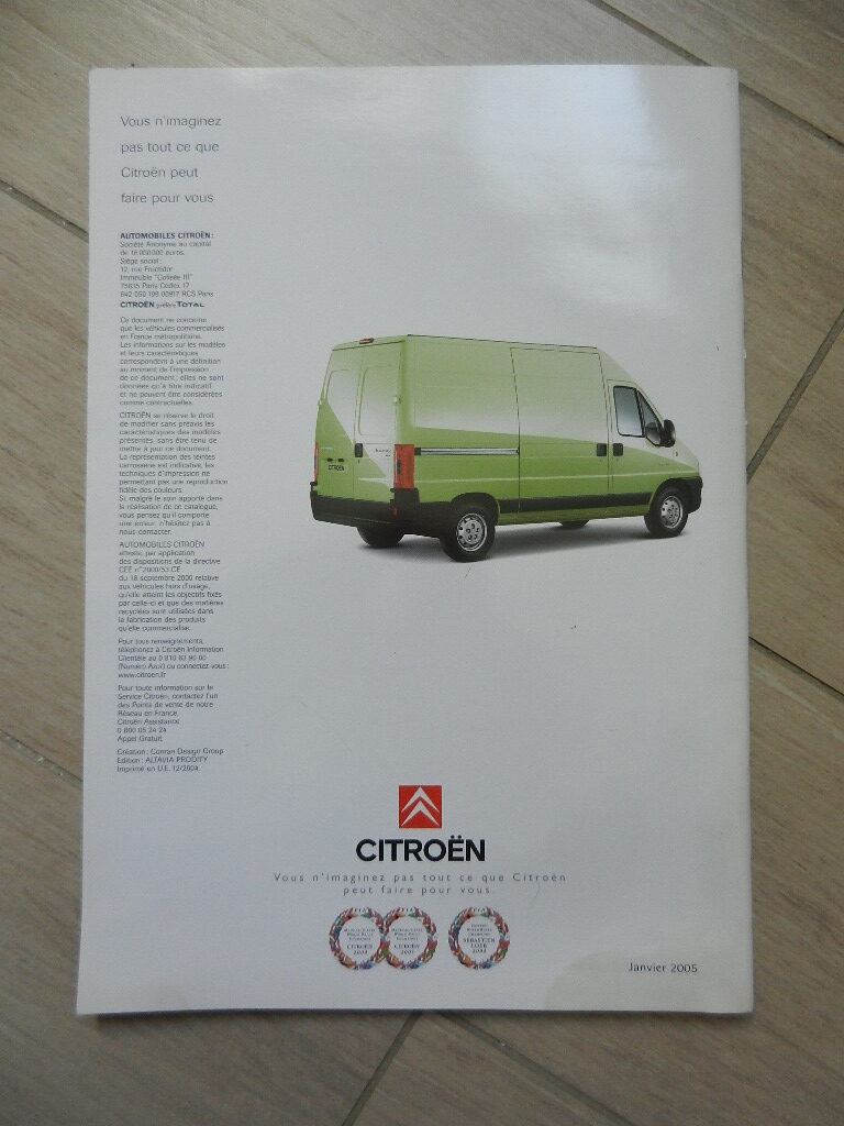 1 catalogue Citroen Jumper janvier 2005 44 pages en Français bon état, trace d’humidité dans le bas.
