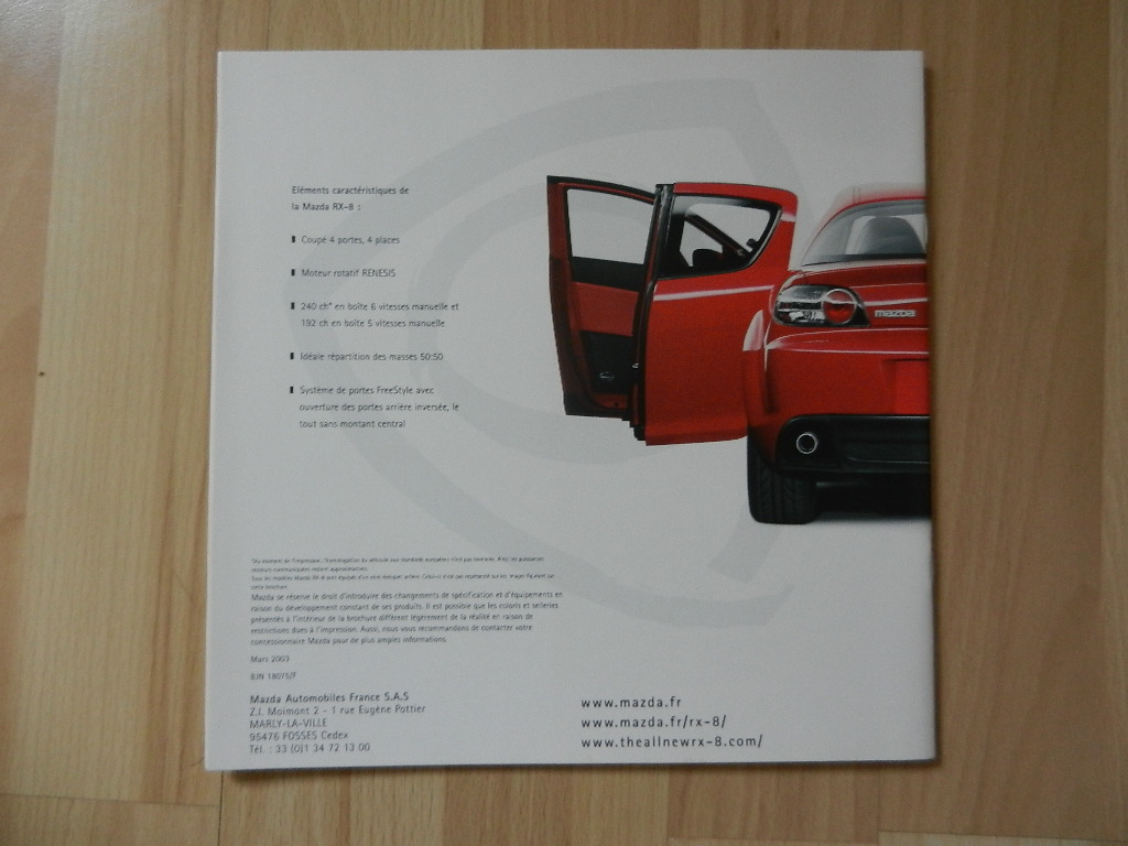 1 catalogue Mazda RX8 mars 2003 réf : BJN 18075/F 12 pages en Français très bon état.
