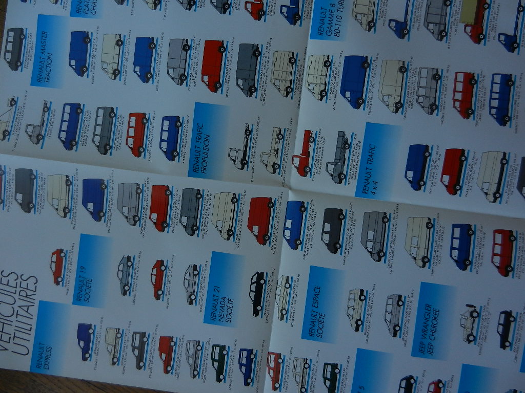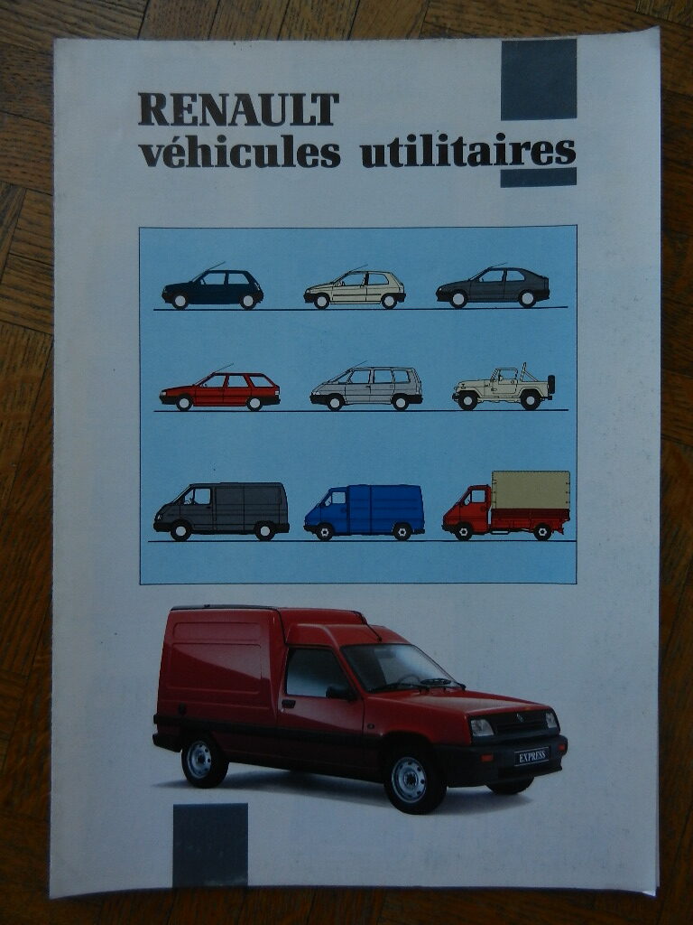 Renault Express, gamme société : R5 Super5, Clio, R19, R21 nevada, Espace, Jeep Wrangler, Jeep Cherokee, Trafic, Master, B80, B110 turbo