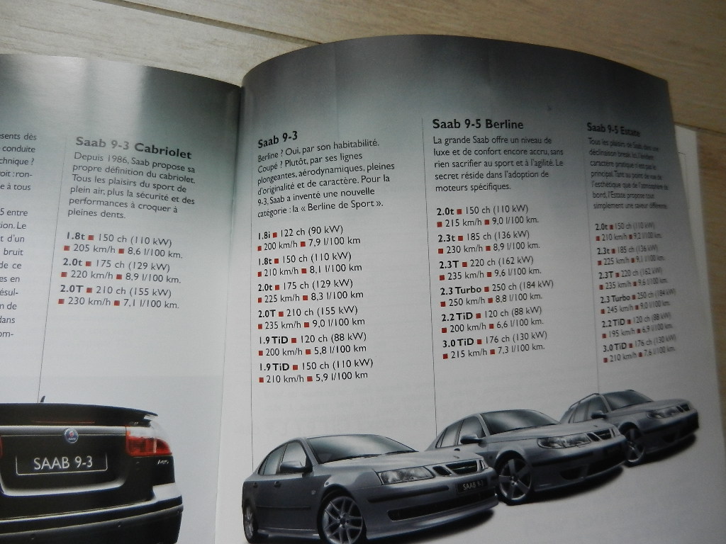1 catalogue SAAB gamme 2004 septembre 2004 Saab 9-3 berline de sport Saab 9-3 cabriolet Saab 9-5 berline & estate 36 pages en Français Bon état.