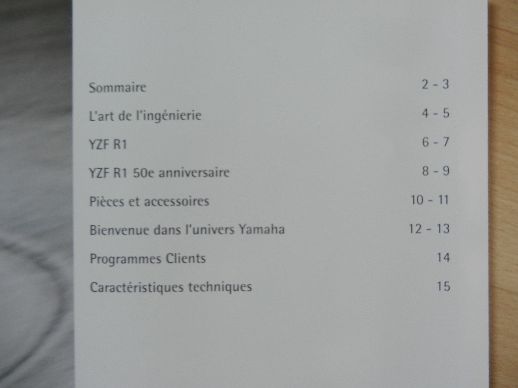 1 catalogue Yamaha YZF – R1 2012 15 pages en Français Etat neuf