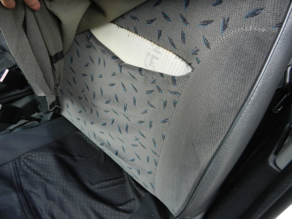 Sièges en velours, le chauffeur est décousu au niveau de dossier, d’où les house sur les sièges avant.