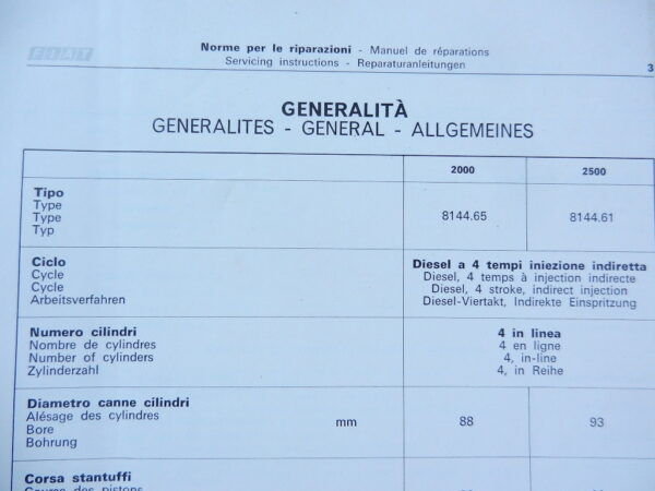 Fiat Manuel de réparation Moteur Diesel 2000 – 2500