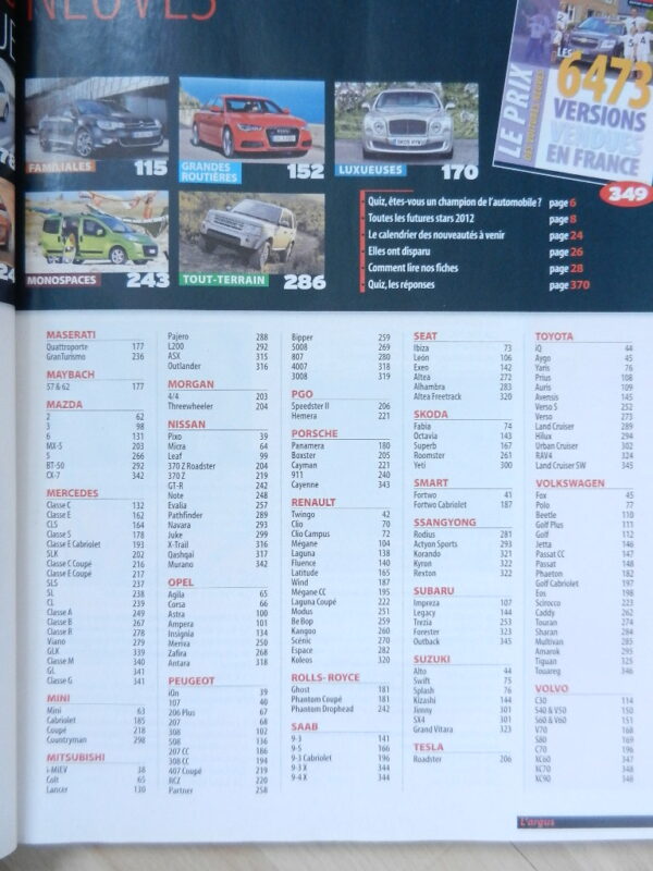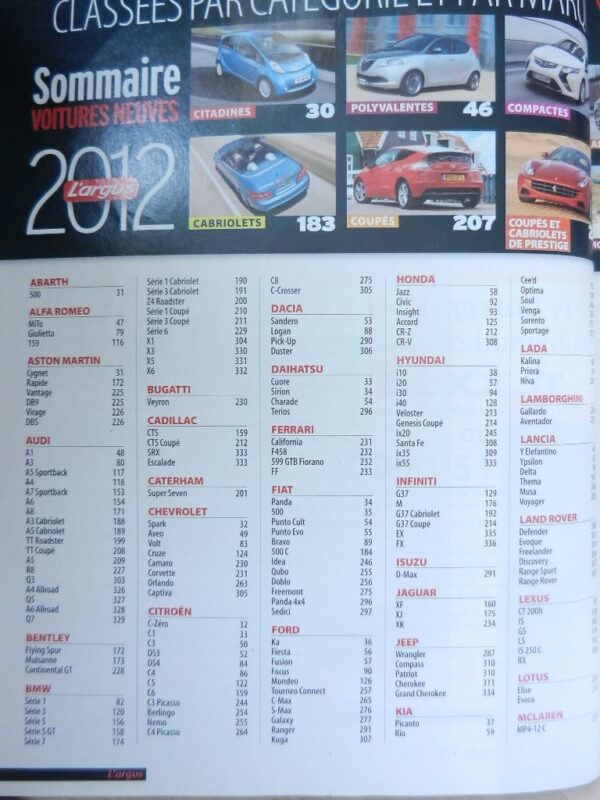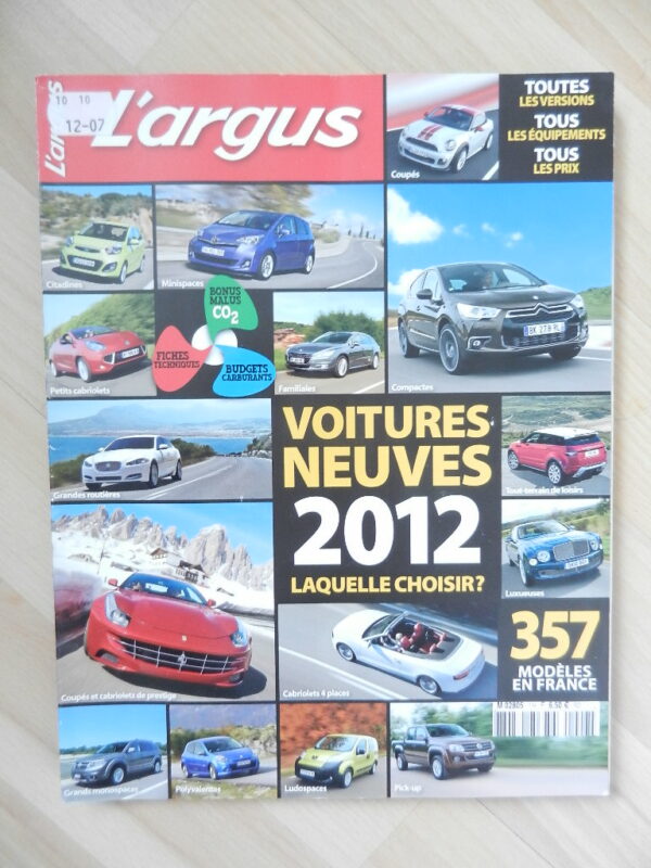 1 magazine L’ Argus Voitures neuves 2012 laquelle choisir ? Retrouvez sur 372 pages l’ensemble des modèles vendu en France en 2012. Bon état.