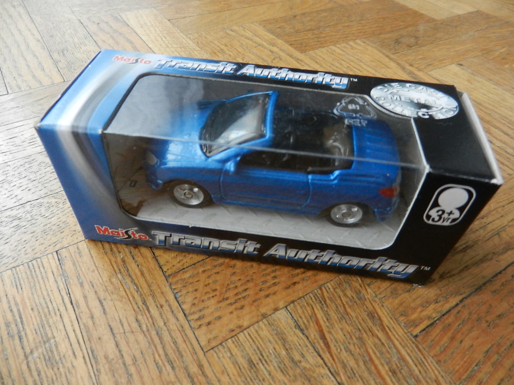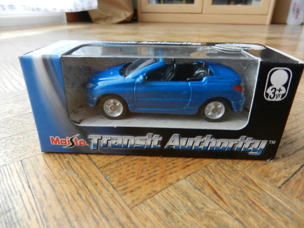 1 miniature Peugeot 206CC bleu récif Marque : Maisto série : Transit Authority échelle : 1/64 état neuf, avec sa boite d’origine.