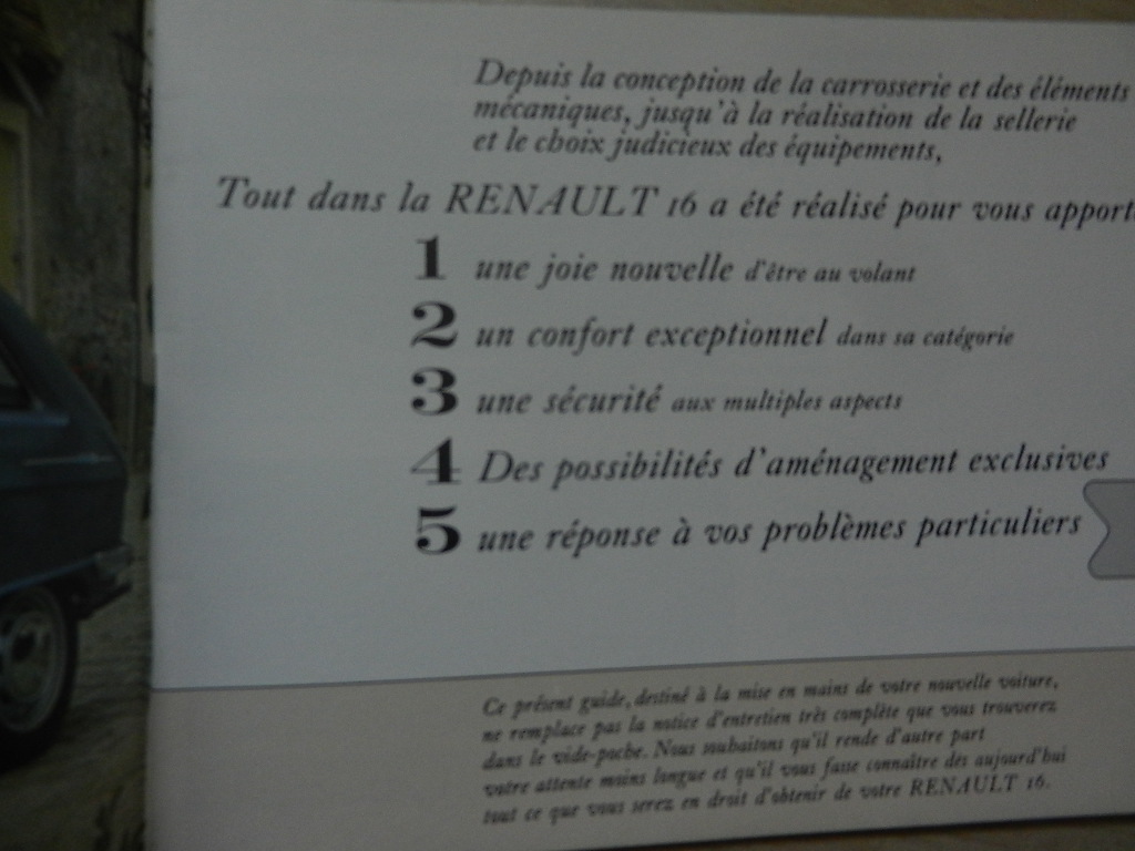 1 notice d’utilasation Renault R16 octobre 1968 rèf : 77 01 426 825 26 pages en Français dimensions : 21 x 15 cms Très bel état,