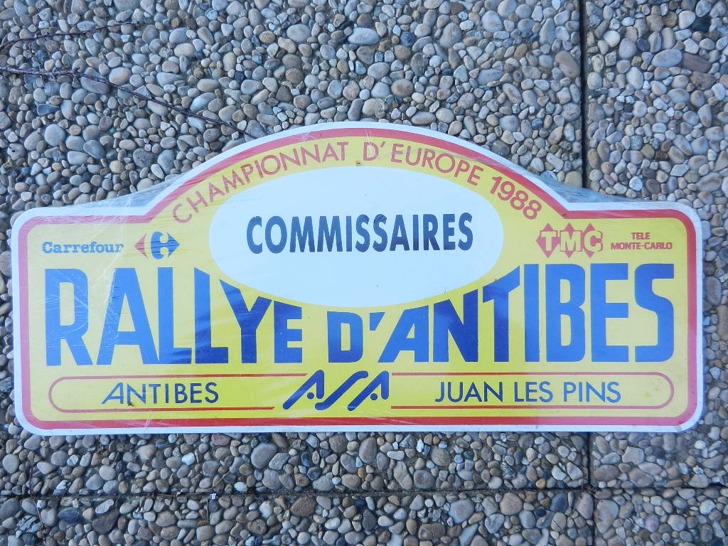 1 plaque de Rallye / calendre Rallye d’Antibes championnat d’europe 1988 Commissaires en plastique parfait état.