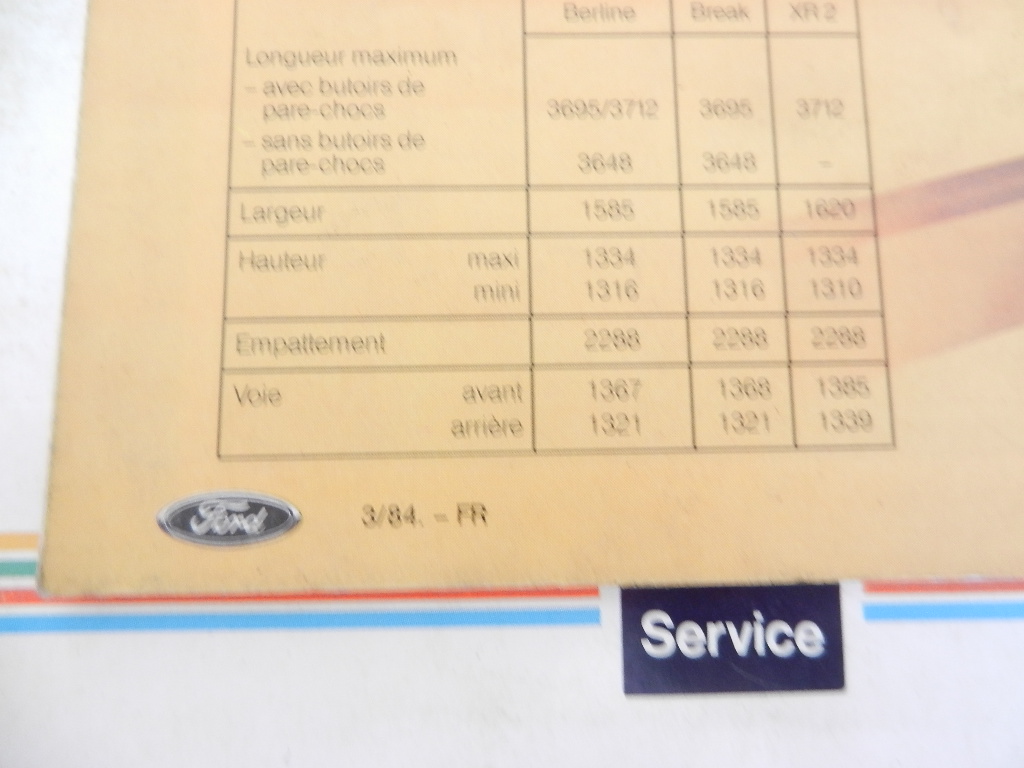 1 manuel d’entretien gamme mars 1984 Fiesta Escort Orion Sierra Capri